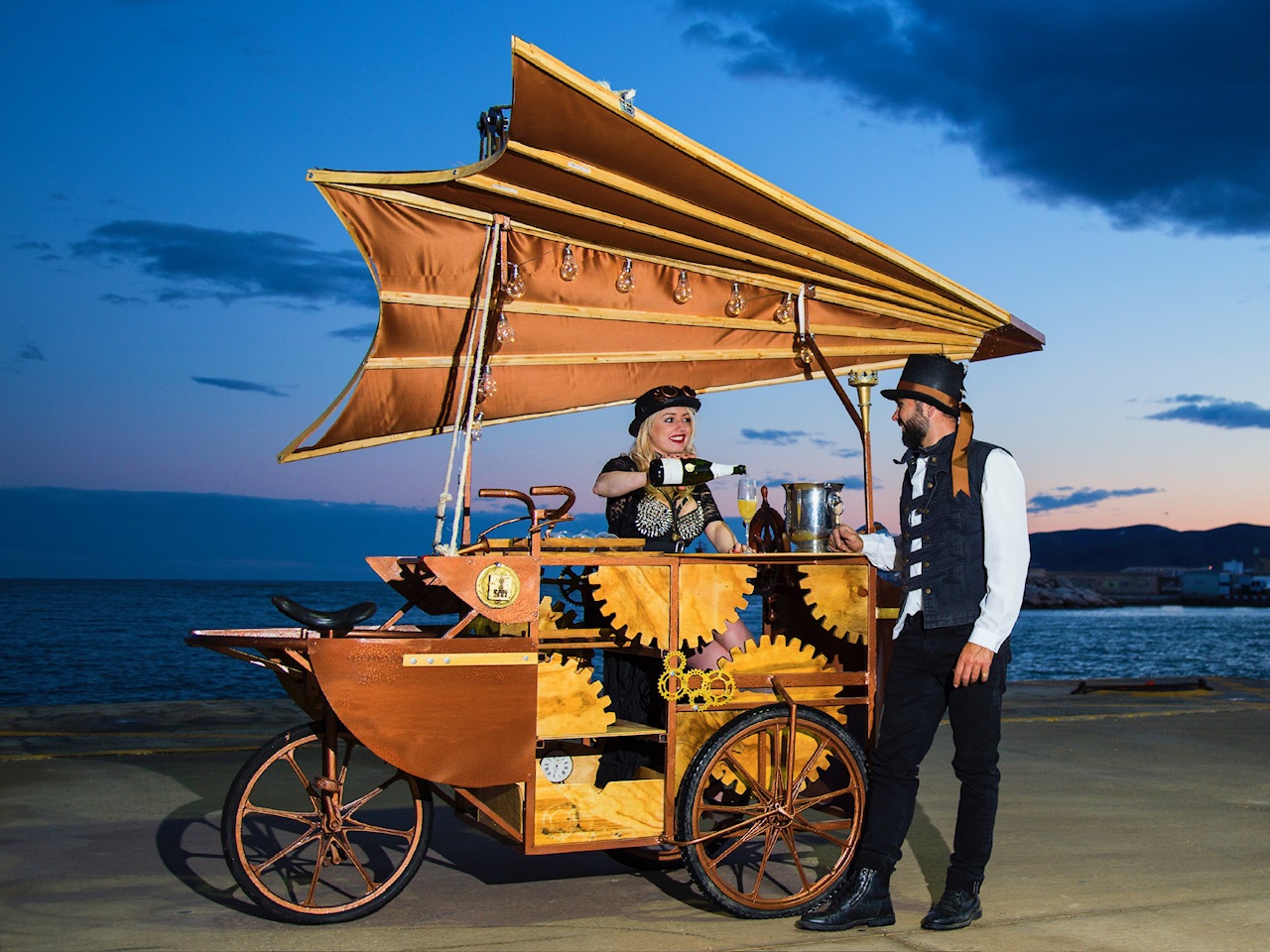 Te presentamos FLYDELTA, nueva creación única en el mundo idónea para cócteles en los que servir copas de un modo divertido, elegante y creativo. FLYDELTA se puede mover por todo el espacio. Las alas también tienen movimiento mediante un sistema de poleas. Una actriz/camarera totalmente caracterizada sirve copas o cualquier bebida o bandejas de catering. El MC va trasladando FLYDELTA de un punto a otro con la actriz para que todo el mundo pueda disfrutar este espectacular intento y del cóctel que se sirve.